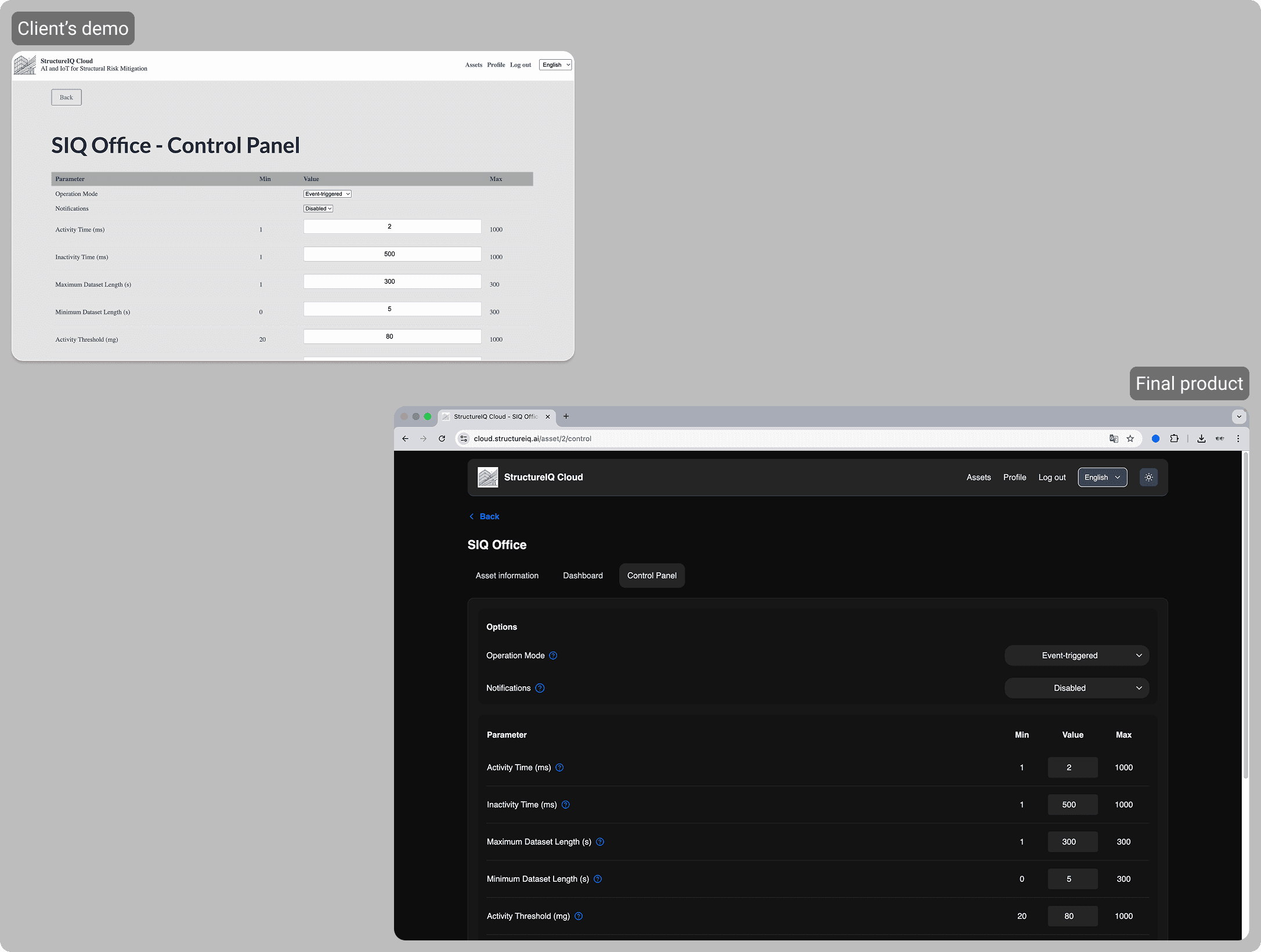 For StructureIQ, we engineered a production-ready monitoring platform that delivers real-time data to asset owners, insurers, and engineers. We led a complete UX/UI modernization of the system, implementing a custom front-end with three specialized views to ensure each stakeholder can navigate relevant data efficiently. By integrating Mapbox for interactive geospatial tracking, we created an intuitive professional tool that successfully bridges the gap between complex AI insights and practical asset management.